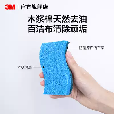 3M Sgao scrub wood pulp cotton anti-scratch strong absorbent brush bowl dishwashing sponge dish cloth