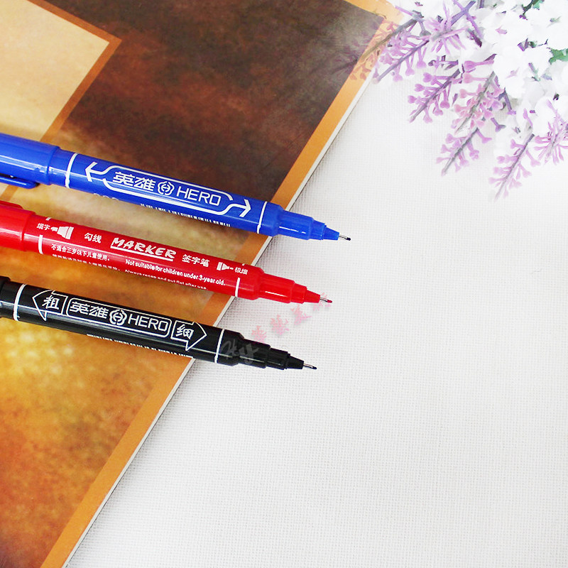hero hero small double head signature pen thickness two waterproof speed dry not dropping color art special drawing hook pen