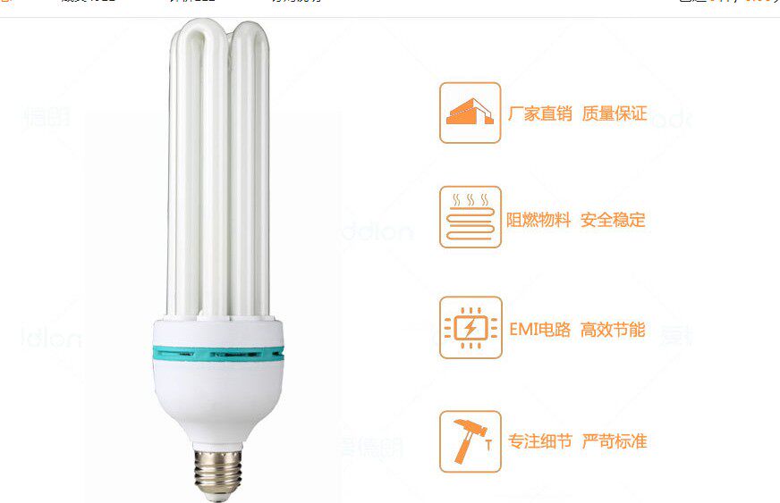 Three primary color 4U energy-saving lamp tube E27 screw lamp holder 65W85w105w white light power light source
