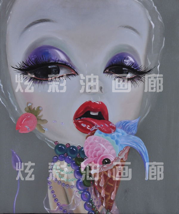 Valentine's Day gift oil painting pure hand-painted oil painting little fresher girl goldfish ice cream "Young na" *