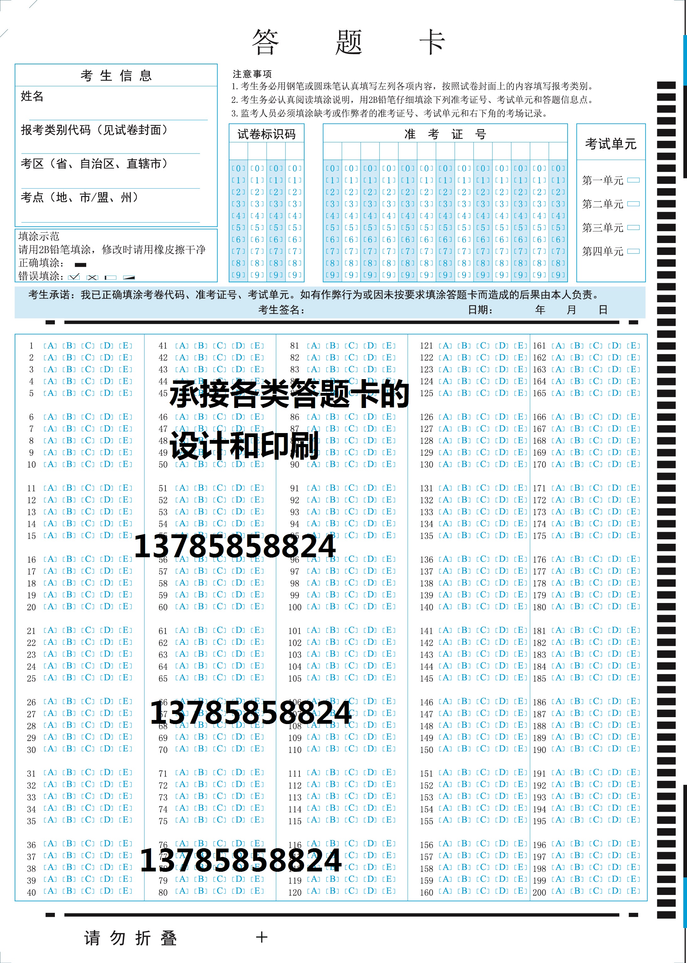 Standard answer card 180 question tega 20 questions with ABCDE5 option 200 questions answer card-Taobao