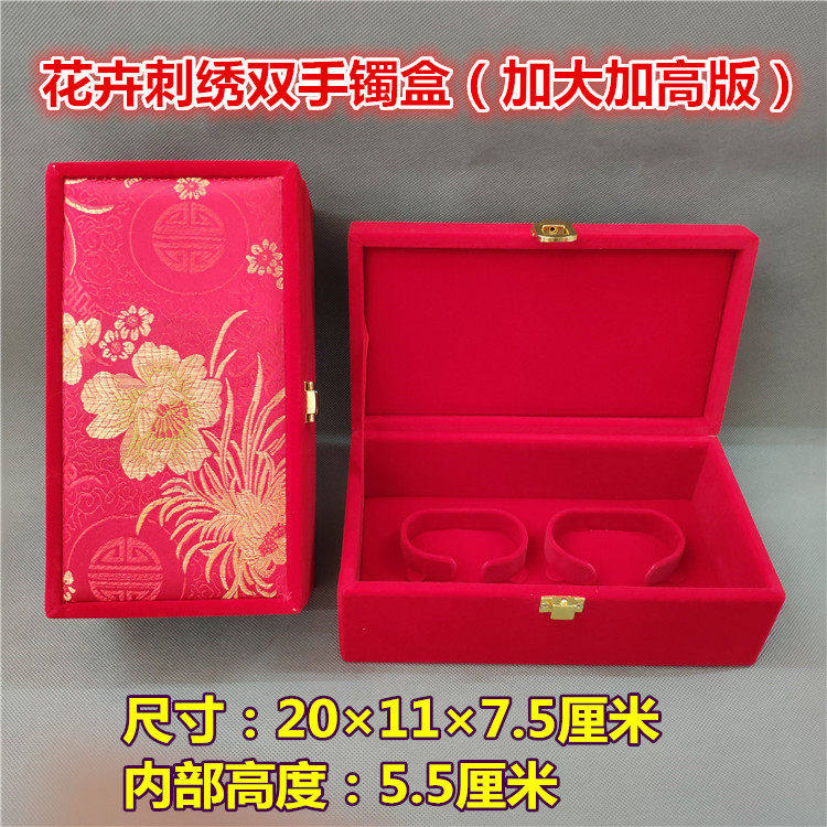 Flower embroidered double bracelet box (standard edition) Flower embroidery double bracelet box (plus high version) Handle bracelet box with high double bracelet box wine red bracelet box