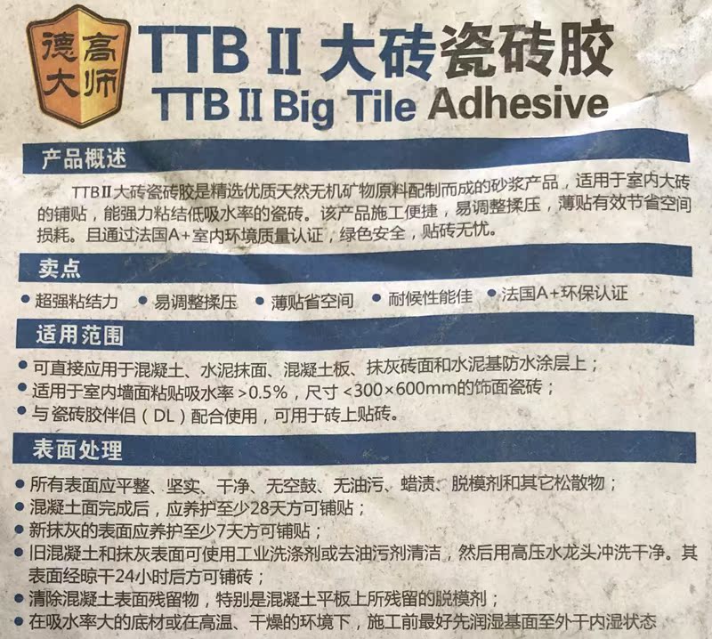 Tile glue 20KG Master Degao strong polymer glue paste internal and external wall ceramic tile stone
