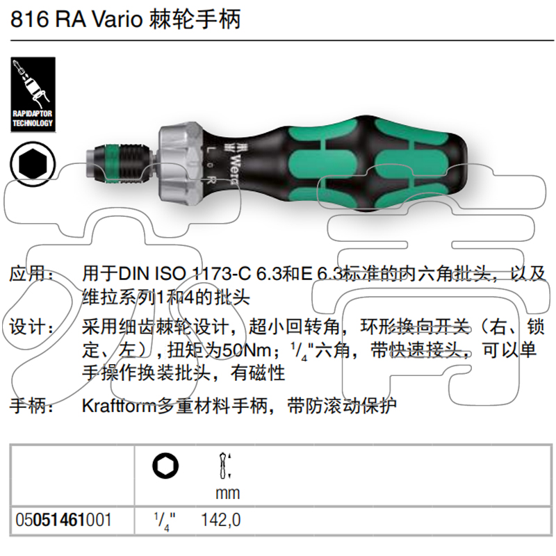 German Wera Villa 816RA ratchet screwdriver quick handle fits 1 4 batches