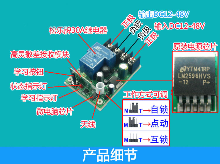 Wireless remote control switch 12V 30A high power switch electrical remote control switch single - way remote control switch