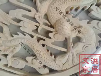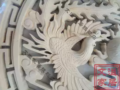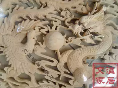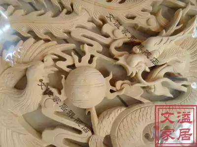 80CM Dragon and phoenix auspicious Dongyang wood carving partition entrance pendant decal