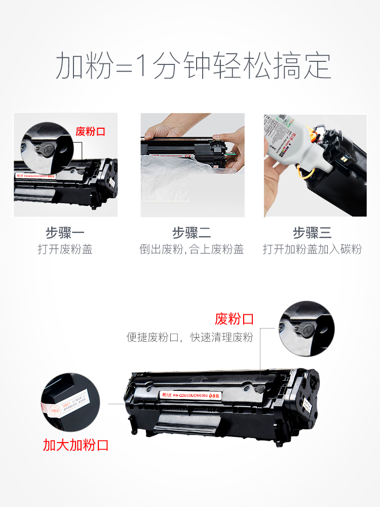 Tianwei Q2612A non-easy to add powder Tianwei Q2612A Easy to add powder Tianwei Q2612A large capacity powder toner drum Tianwei 12A Easy to add powder toner drum plus 2 bottles of white bottle toner