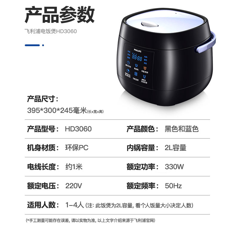 Philips rice cooker Household multi-function mini small single person 2l intelligent rice cooking heating rice cooker for 2-3 people