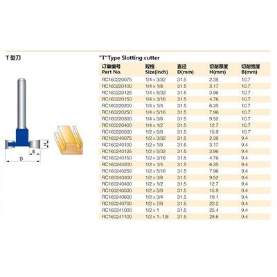 Square large king milling cutter T type knife wood milling cutter wood with notched gong knife engraved milling cutter 1 2-1 4 shank tool