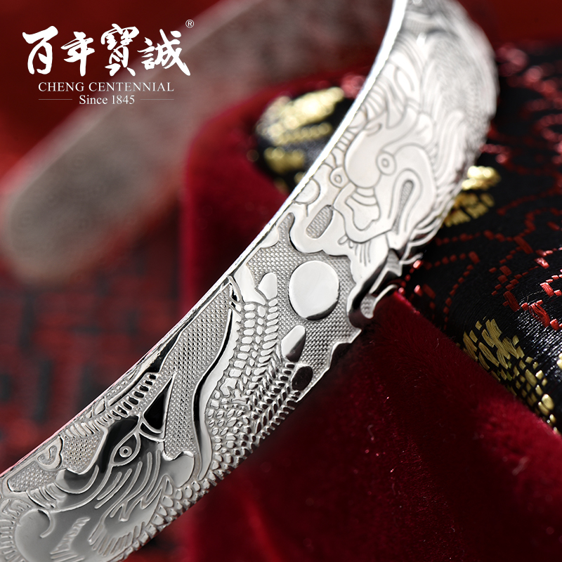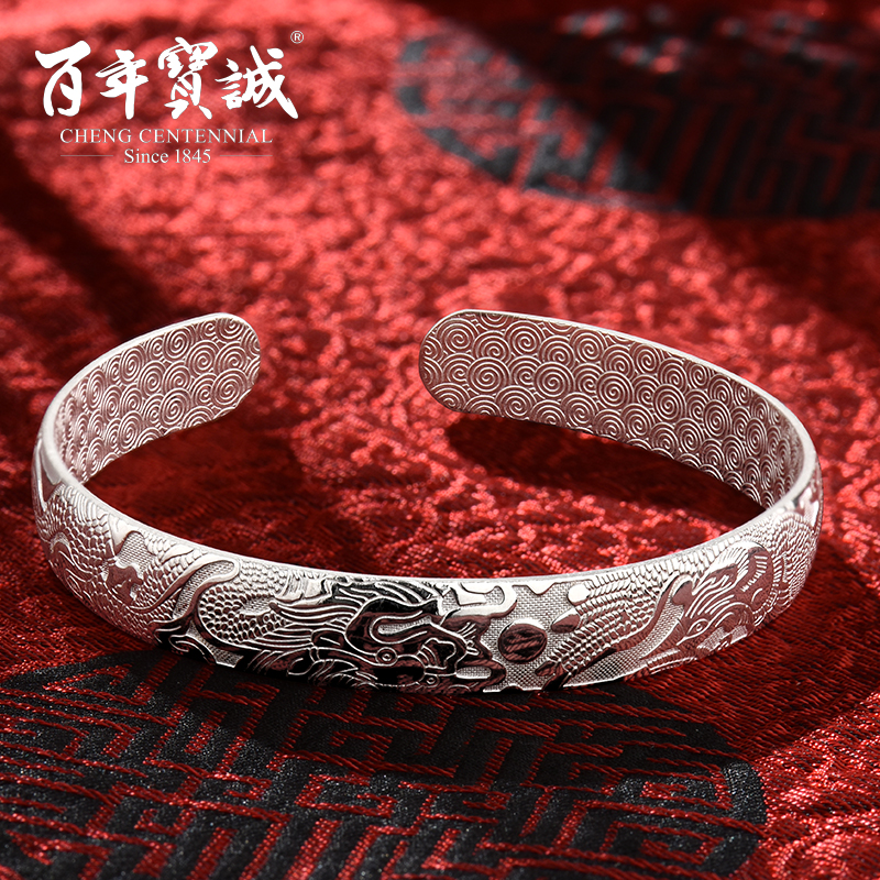 Centuries-old Baocheng Longfeng presents a silver bracelet with a 999 pure silver opening foot silver bracelet to pass on the mother's gift