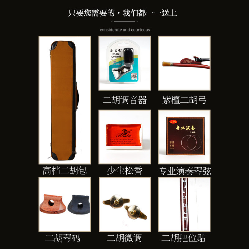 Positive Tone Hall Erhu Musical Instrument Professional Play Big Volume Collection of India Xiaoye Purple Sandalwood Old Stock Huqin Suzhou