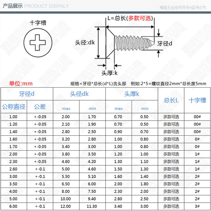 KA1 1 2 1 4 1 7 2 2 3 2 6 3 Cross countersunk head self-tapping screw F head tip and tail hardened screw