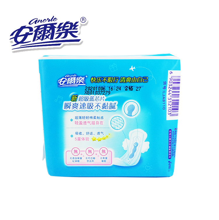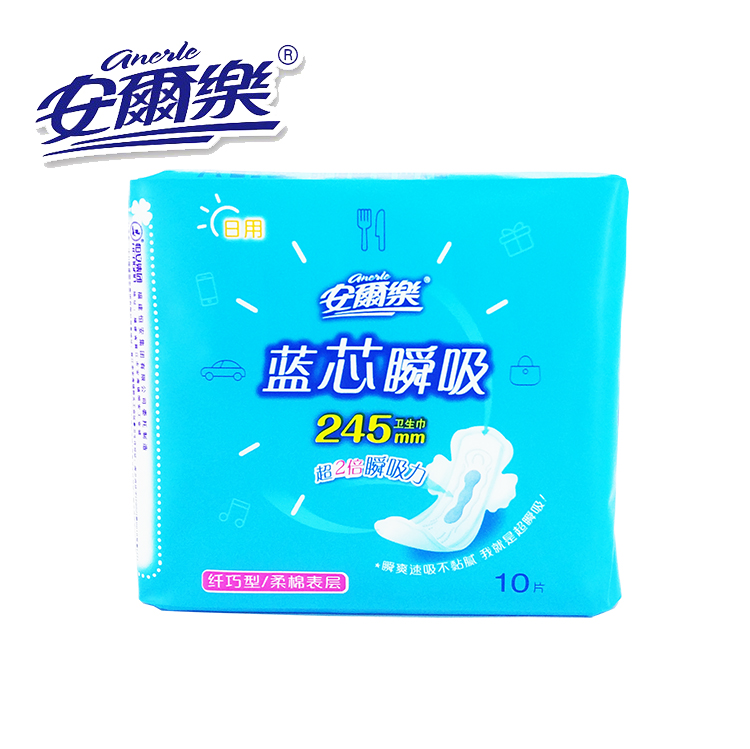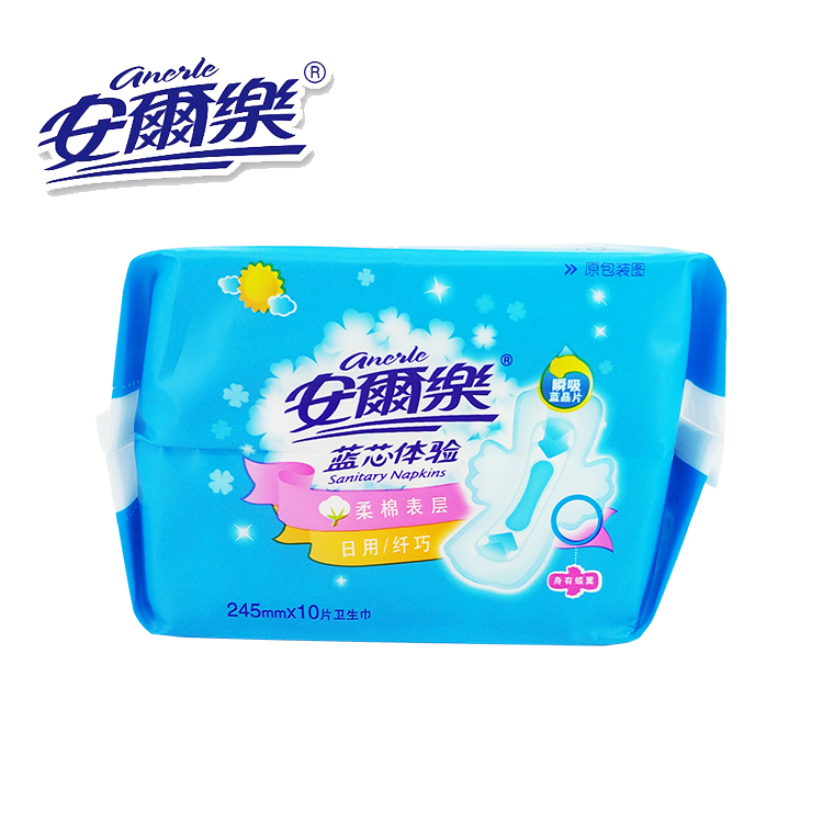 LJA8110 An Erle blue core fleeting experience cotton soft surface layer 245mm fibrillar daily sanitary towel 10 sheet bag-Taobao