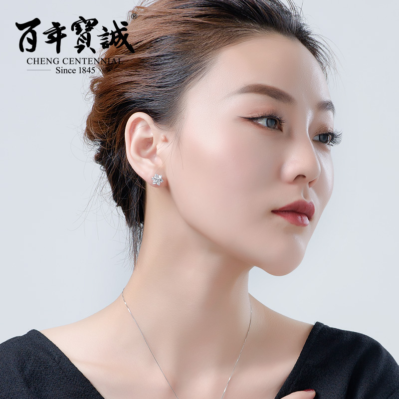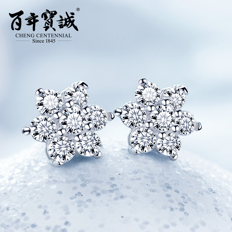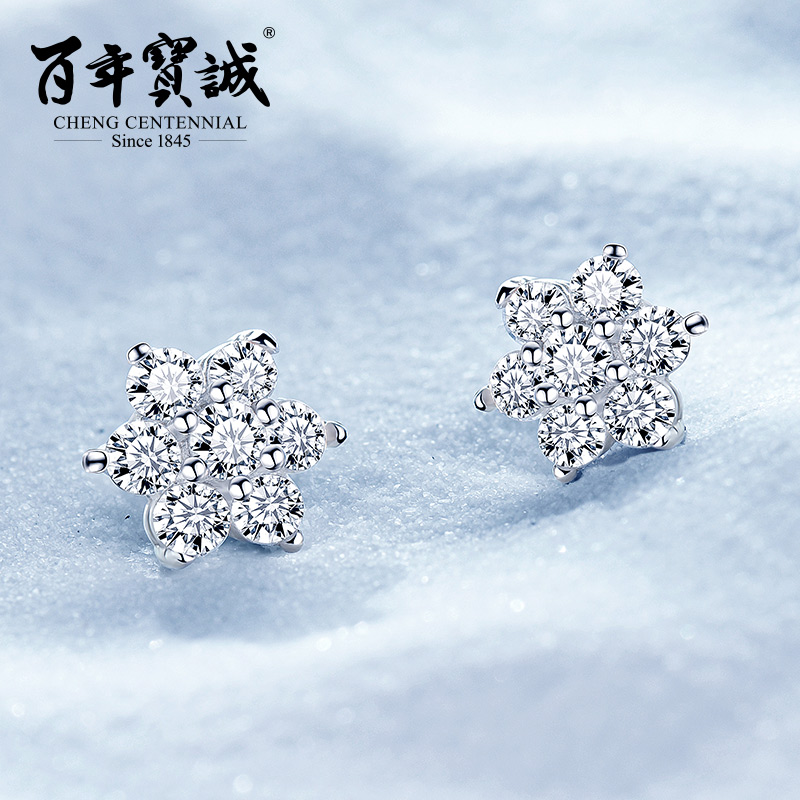 Centennial Baocheng 925 silver zircon snow flower stud earrings for women small student earrings sleep without picking ear holes