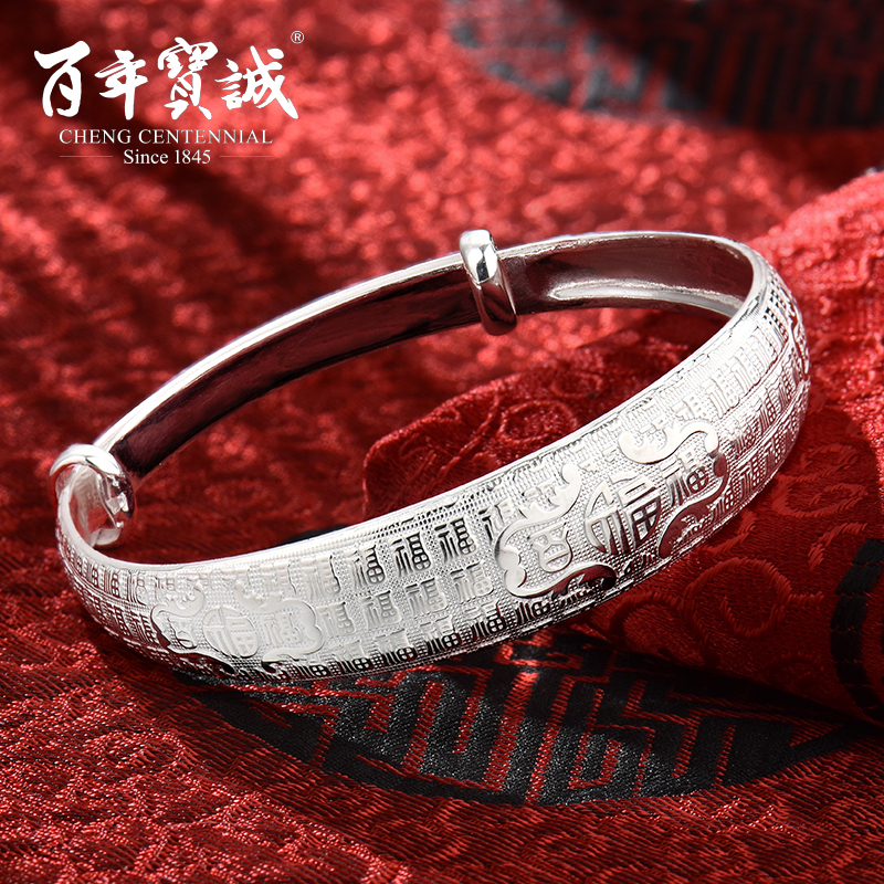 A hundred years Baocheng Baifu silver bracelet female 999 sterling silver old section inheritance foot silver bracelet to send mom gifts for the elderly