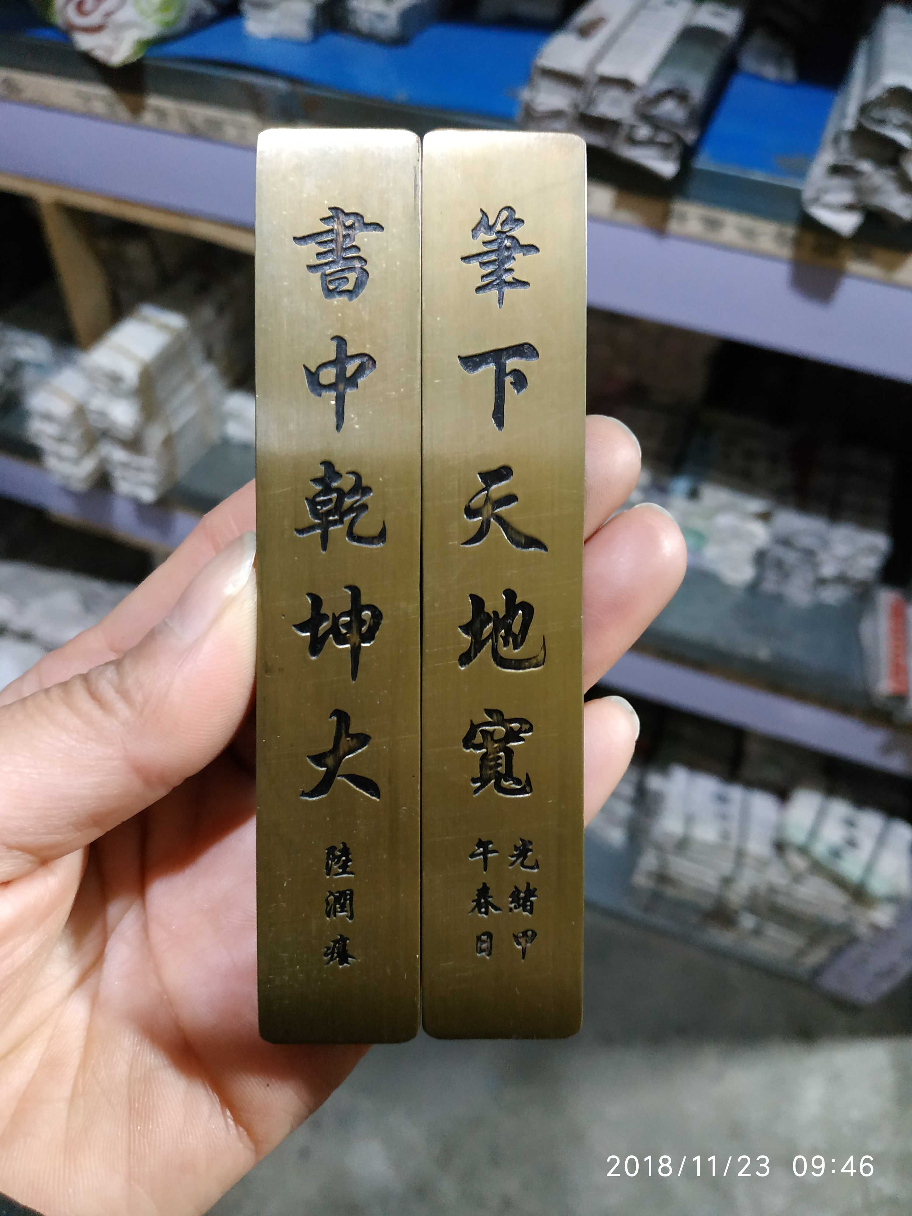 Slum - shanghai - room articles brass solid hand carved small italics written in 11 cm town ruler