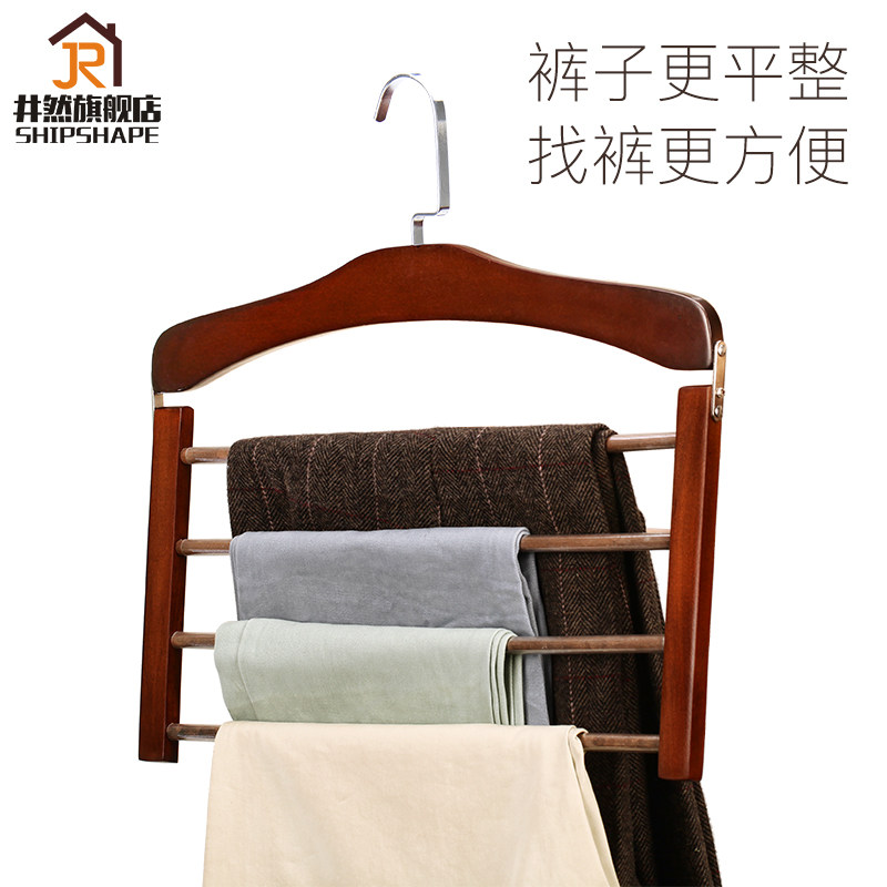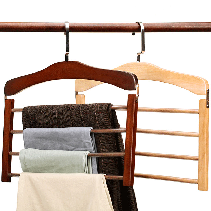 Solid Wood multi-layer pants rack pants clip wooden household scarf storage wardrobe multifunctional Magic non-slip adhesive hook clothing shelf