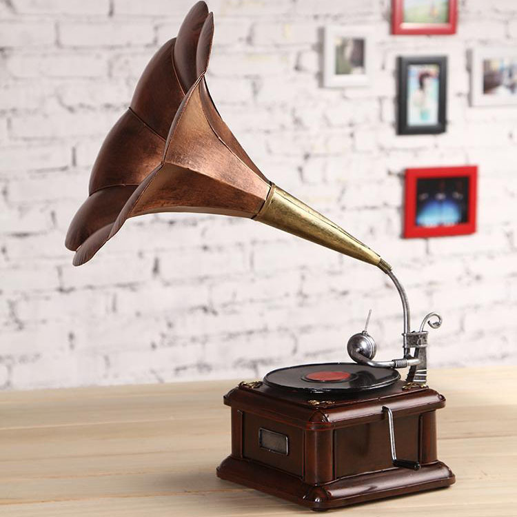 Vintage vintage vinyl record player Home soft decoration photography props Big horn gramophone model ornaments