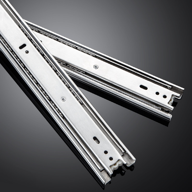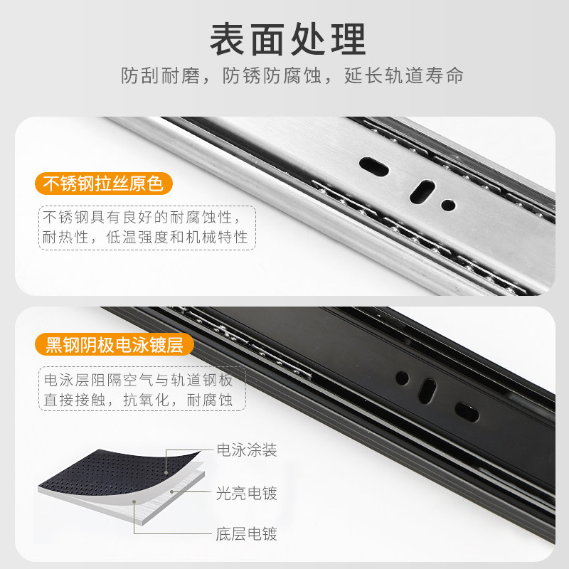 Stainless steel muted thickened guide track clothes integral cabinet drawers slide rail computer desk slide rail 3-section rail (2 only)