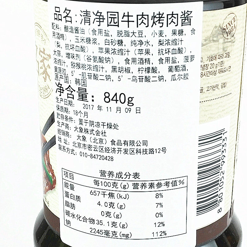 South Korea Imported Clean Garden Beef Grilled Sauce Barbecue Sauce Dip Sauce 840g22 Year June Due