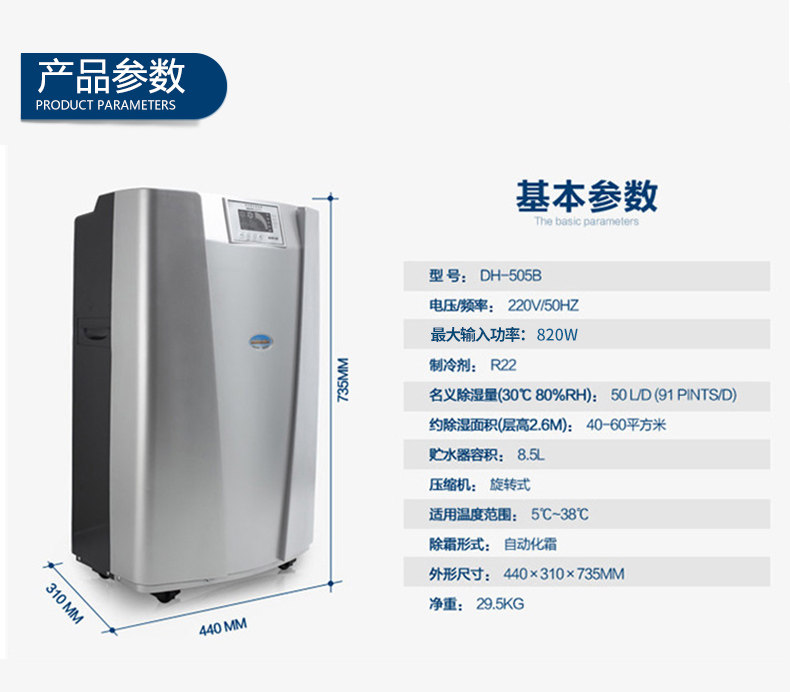 DH-504B Household Commercial 50L (KG) Dehumidifier DH-505B Industrial and Commercial Dual-use 50L Dehumidifier