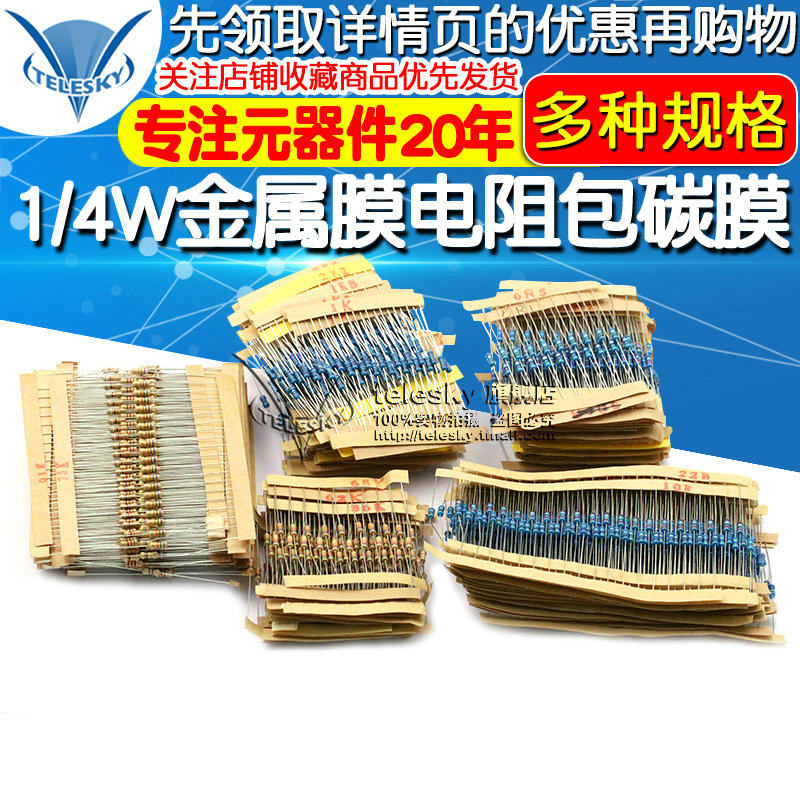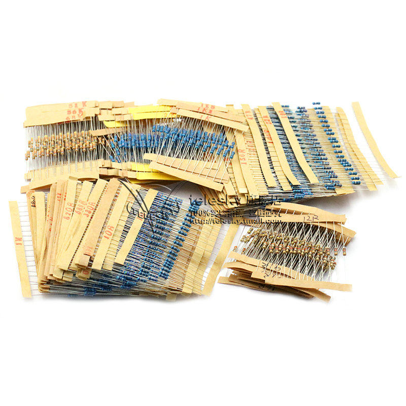 25 commonly used 1 4W metal film resistor packs 1% 20 per type, a total of 500 30 commonly used 1 4W metal film resistor packs 1% 20 per type, a total of 600