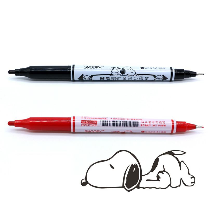 Morning light express Exotic Notes Pen Small Double Head Hook Line Pen Children Painting Black Red Wholesale Label Oily