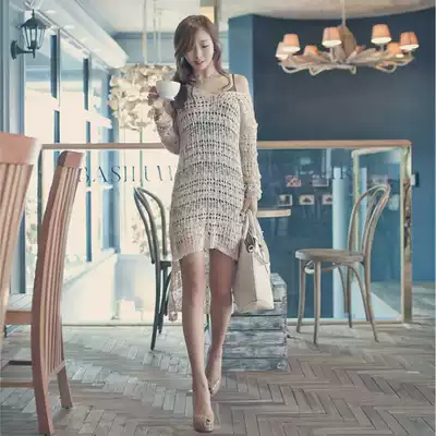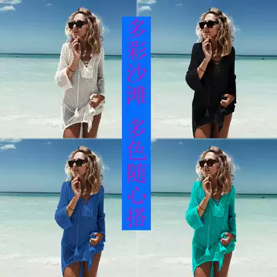 Holiday new bikini blouse swimsuit jacket beach skirt hollow sunscreen clothes hook flower knitted long skirt women's blouse