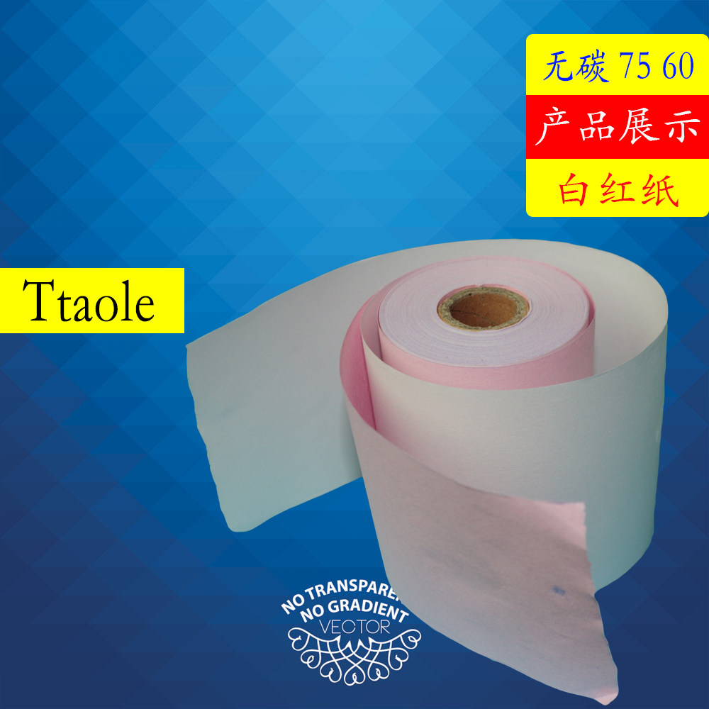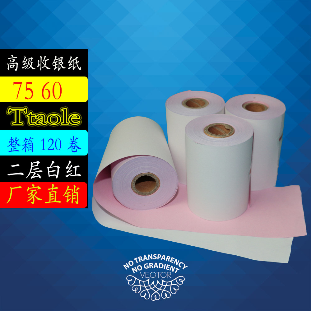 120 rolls of 75x60 color pressure-sensitive two-layer copy paper 74*60 two-page voucher printing paper white and red carbon-free cash register