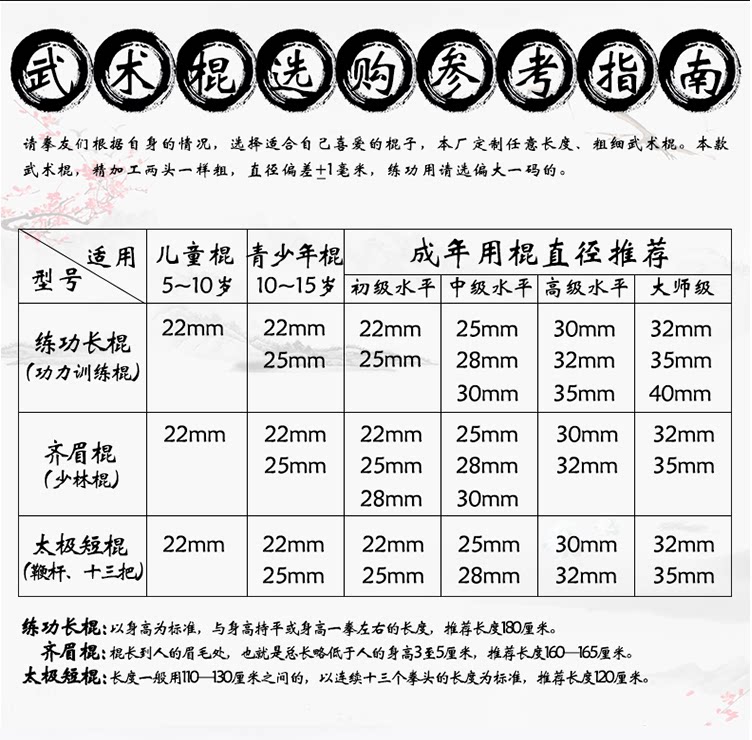White wax stick martial arts stick Shaolin stick Qi eyebrow stick performance stick round wooden stick round wooden stick fitness stick yoga stick