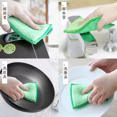 Bamboo fiber sponge wipe strong decontamination scouring cloth degreasing water absorption durable brush dishwashing cloth