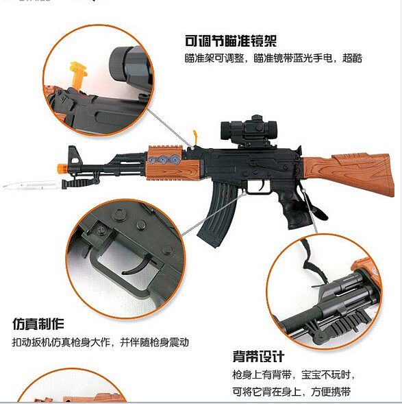 Imitation AK47 electric toy gun children's sound and light heavy vibration rifle submachine gun with bayonet children's toys