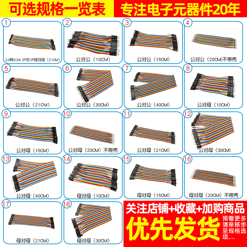 DuPont Line Female-to-Female (21CM) (1 Row) DuPont Line Male-to-Female (21CM) (1 Row) DuPont Line Male-to-Female (21CM) (1 Row) DuPont Line Female-to-Female (30CM) (1 Row) DuPont Line Male-to-Female (30CM) (1 Row) DuPont Line Female-to-Female (40CM) (1 Row) DuPont Line Male-to-Female (40CM) (1 Row) DuPont Line Male-to-Female (40CM) (1 Row) DuPont Line Female-to-Female (1 Row) DuPont Line Female-to-Female (1 Row) DuPont Line Male-to-Male (10CM) (1 Row) DuPont Line Male-to-Female (10CM) (1 Row) DuPont Line Female-to-Female (15CM) (1 Row) DuPont Line Male-to-Female (15CM) (1 Row) DuPont Line Male-to-Male (15CM) (1 Row) DuPont Line Female-to-Female (20CM) Without Shell (1 Row) DuPont Line Male-to-Male (20CM) Without Shell (1 Row) DuPont Line Male-to-Female (20CM) Without Shell (1 Row) DuPont Line 2.0 rpm 2.54 2P-to-1P Female-to-Female (21CM) (1 Row)