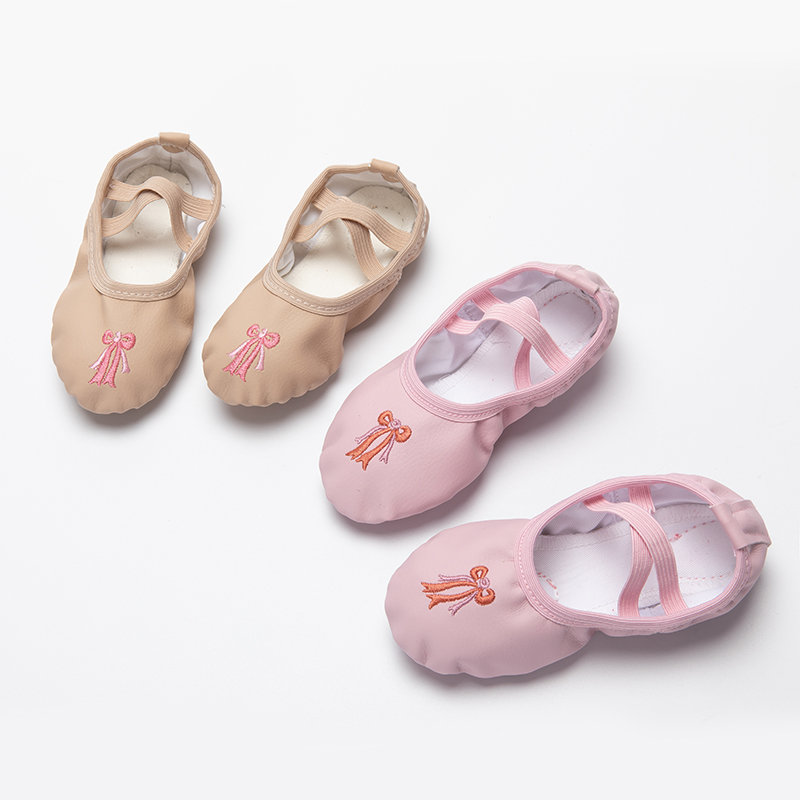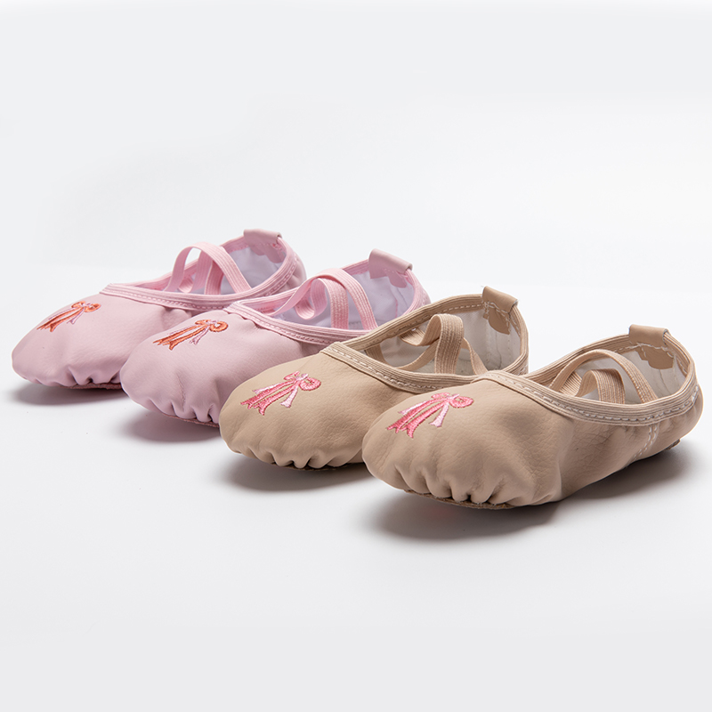 Children's new embroidered bottom shoes Soft bottom dance shoes PU leather girl ballet shoes Gymnastics Skills Shoes Cat Paw Shoes