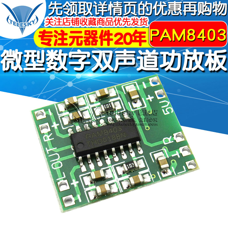 Micro digital power amplifier board 2*3W Class D PAM8403 power amplifier module diy 2.5~5V can be USB powered
