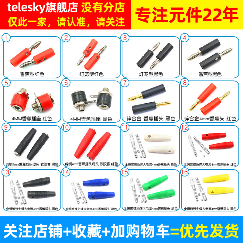 4MM Banana Plug Nickel-plated Red (5 pcs) 4MM Banana Plug Nickel-plated Black (5 pcs) 4MM Lantern Banana Plug Nickel-plated Red (5 pcs) 4MM