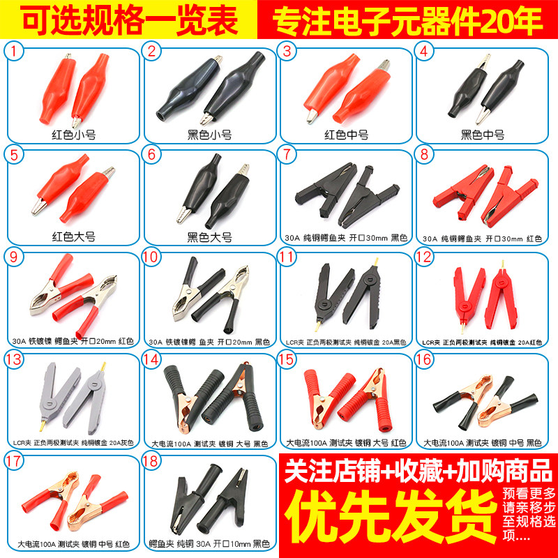 Alligator Clip Red Small (50pcs) Alligator Clip Black Small (50pcs) Alligator Clip Red Medium (50pcs) Alligator Clip Black Medium (50pcs) Alligator Clip