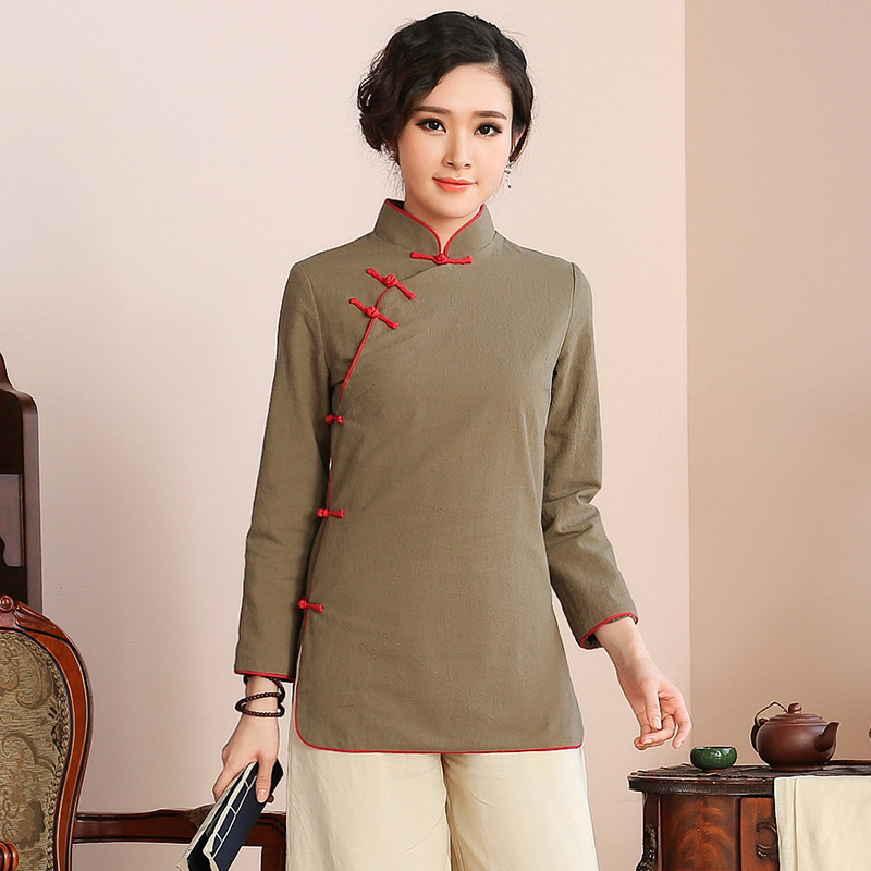 Tang dress Chinese wind spring autumn cotton linen flap buttoned Chinese women's clothing original retro long sleeve qipao blouses 138