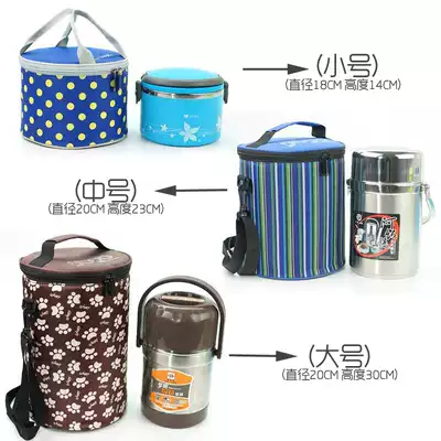 Round Bento bag with large insulation barrel bag cover thick aluminum foil insulation lunch bag hand-held delivery bowl rice bag