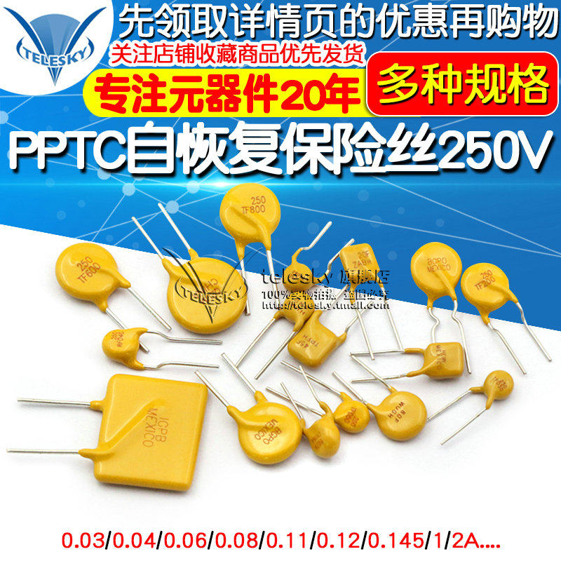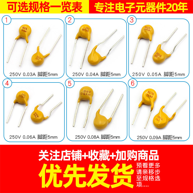 PPTC straight insertion self-recovery fuse 250V 0 03A distance 5mm (5) PPTC straight insertion self recovery fuse 250V 0