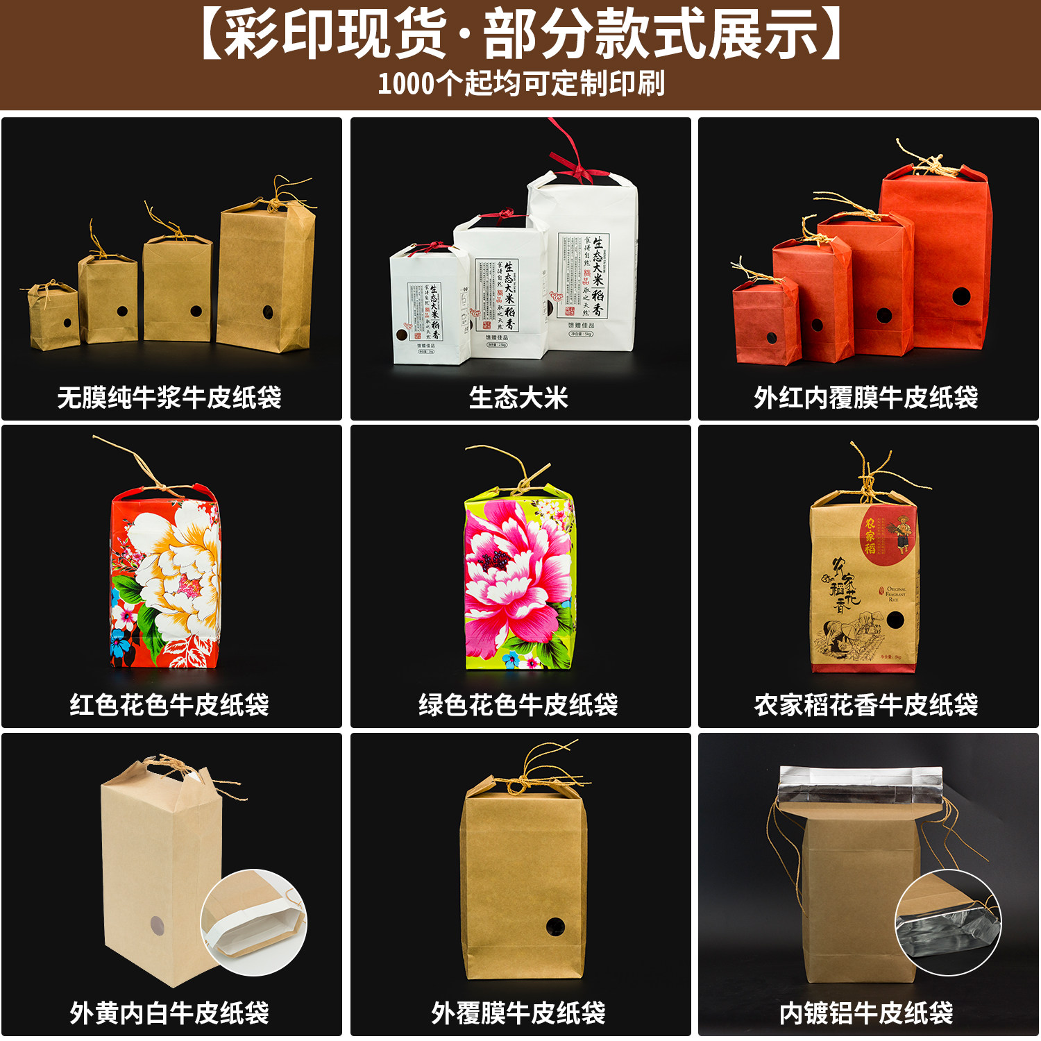 Kraft paper rice millet packaging bag 5 catties 10 catties food grains Mid-Autumn moon cake bag custom printing
