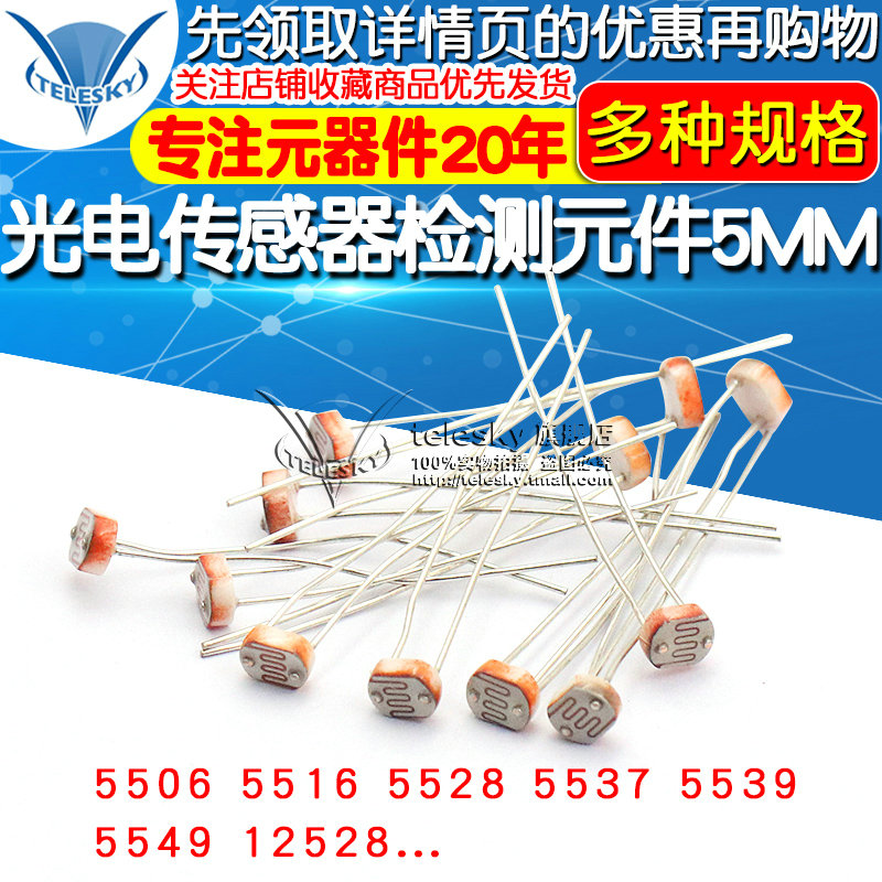 5506 Photoresistor (10pcs) 5516 Photoresistor (20pcs) 5528 Photoresistor (20pcs) 5537 Photoresistor (20pcs) 5539