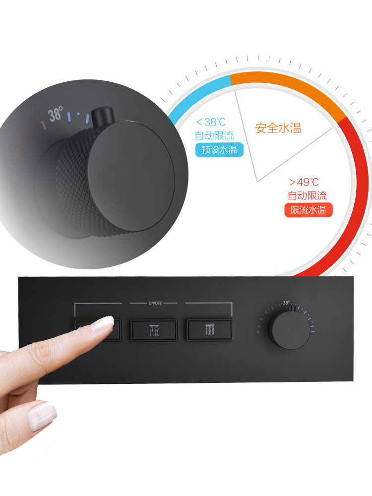 Hanpai concealed shower All copper black constant temperature embedded rain shower Light luxury home in-wall shower set
