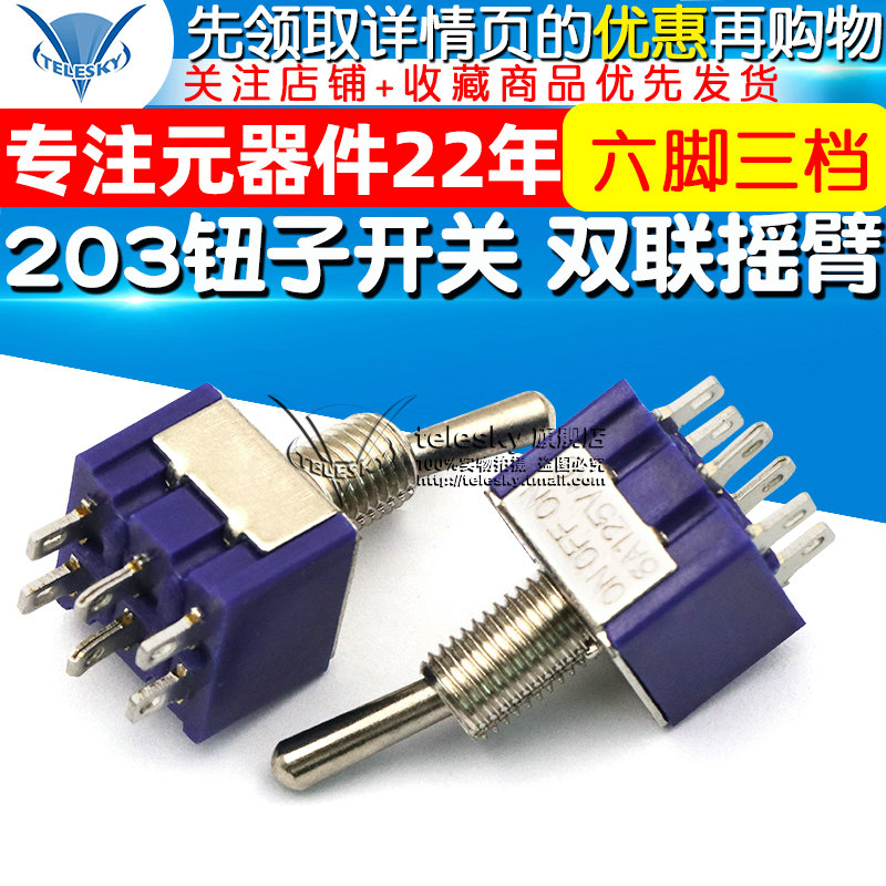 Button switch rocker arm six feet three gears shake double 203 6A125V 3A250V 6 feet three gears