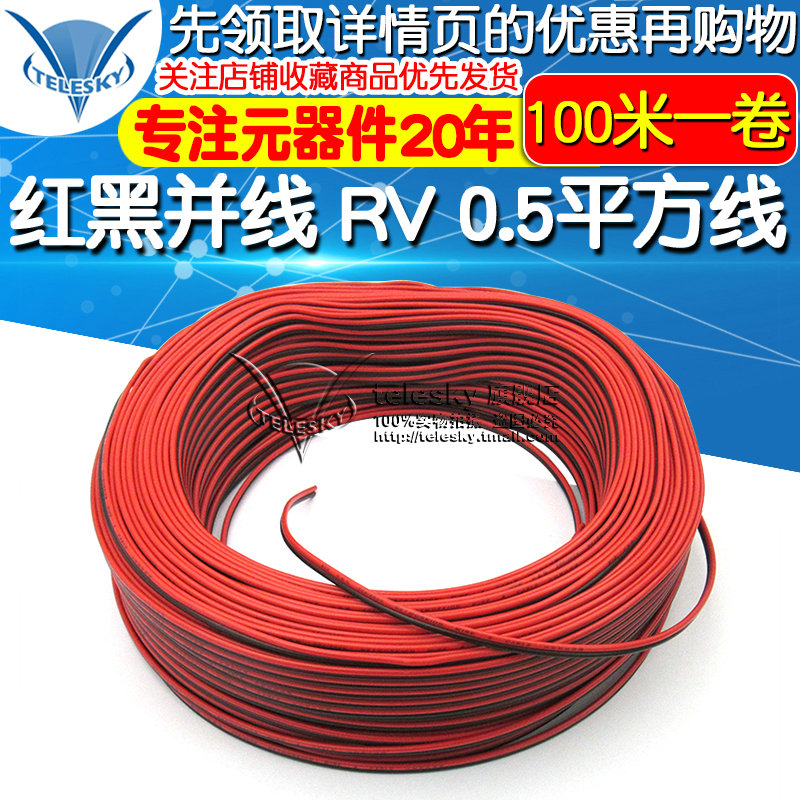 Red and black parallel wire RV 0 5 square wire wire electronic wire 5 meters wire connecting wire 100 meters a roll