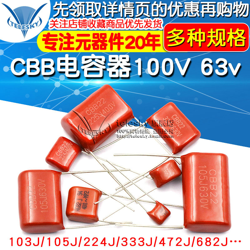 CBB Capacitor 100V 333J 33nF(10pcs) CBB Capacitor 100V 104J 100nF(5pcs) CBB Capacitor 100V 104J 100nF (5pcs) CBB Capacitor 100V 104J 100nF