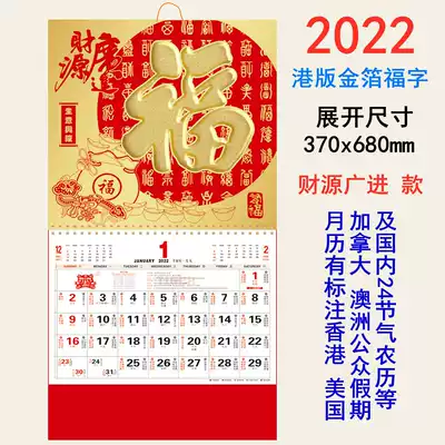 2022 Fu character calendar New year victory Hong Kong version of holiday Lucky Brand Zodiac Zodiac bronzing monthly calendar gold background hundred Fu calendar