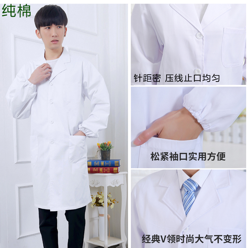 Pure cotton white coat long sleeve chemical experiment to doctors to practice all cotton white coat nurse clothes
