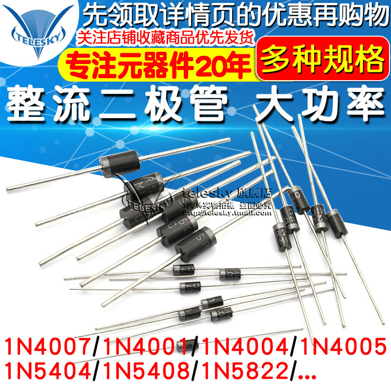 1N4007 10A10 1N5408 1N5819 1N4001 5822 In-line rectifier diode stage IN4007