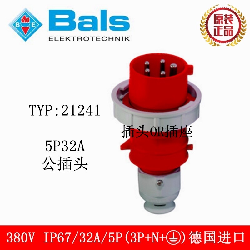 Original dress German bullies BALS Industrial waterproof male plug TYP21239 21241 5P16A 32A IP67